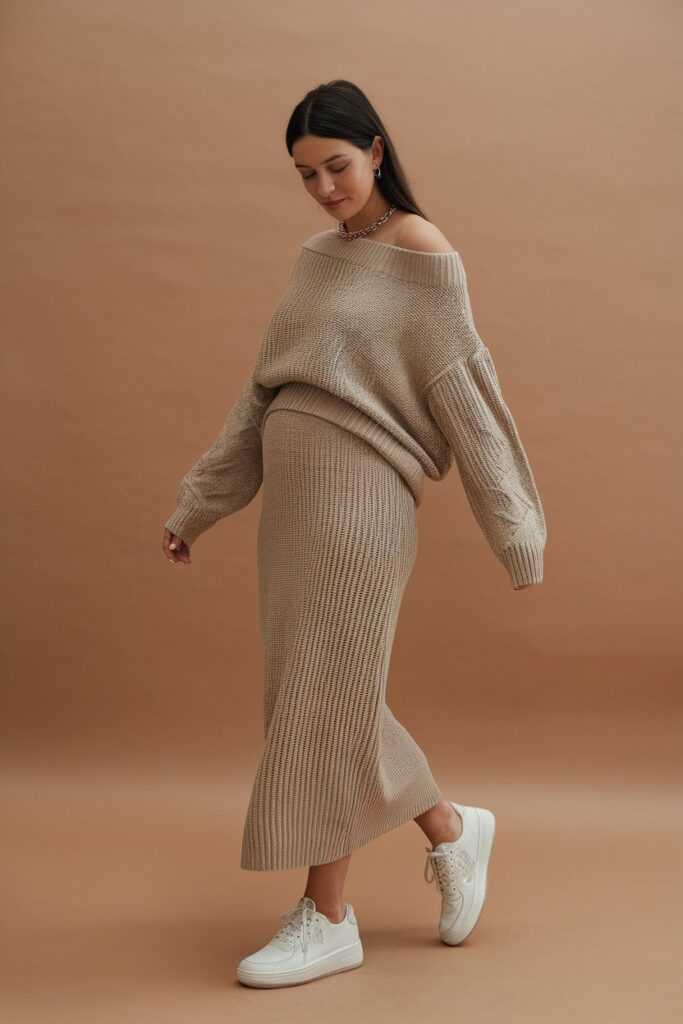 23. Matching knit set + simple jewelry + clean sneakers