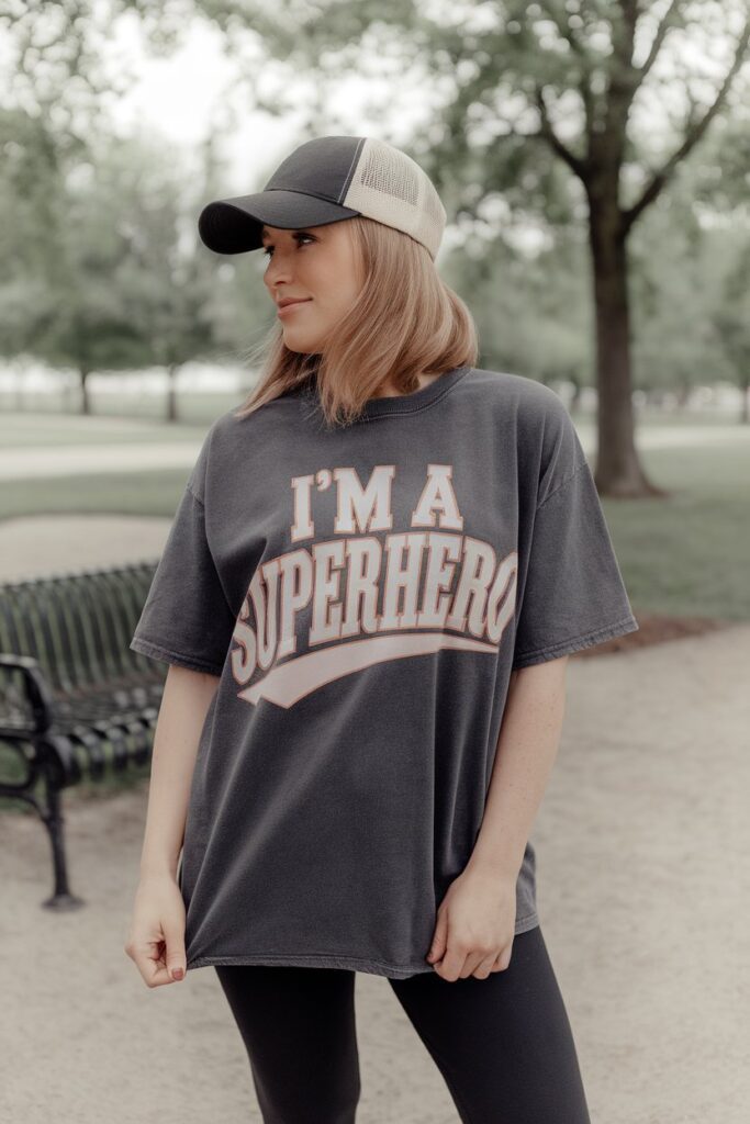 19. Oversized graphic tee + leggings + baseball cap