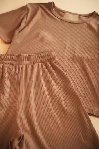 2. Ribbed lounge set (short sleeve top + wide-leg pants)