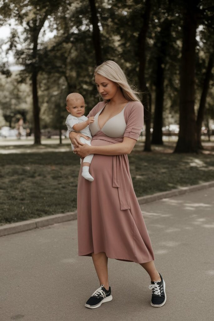 These outfits support movement and keep nursing practical.