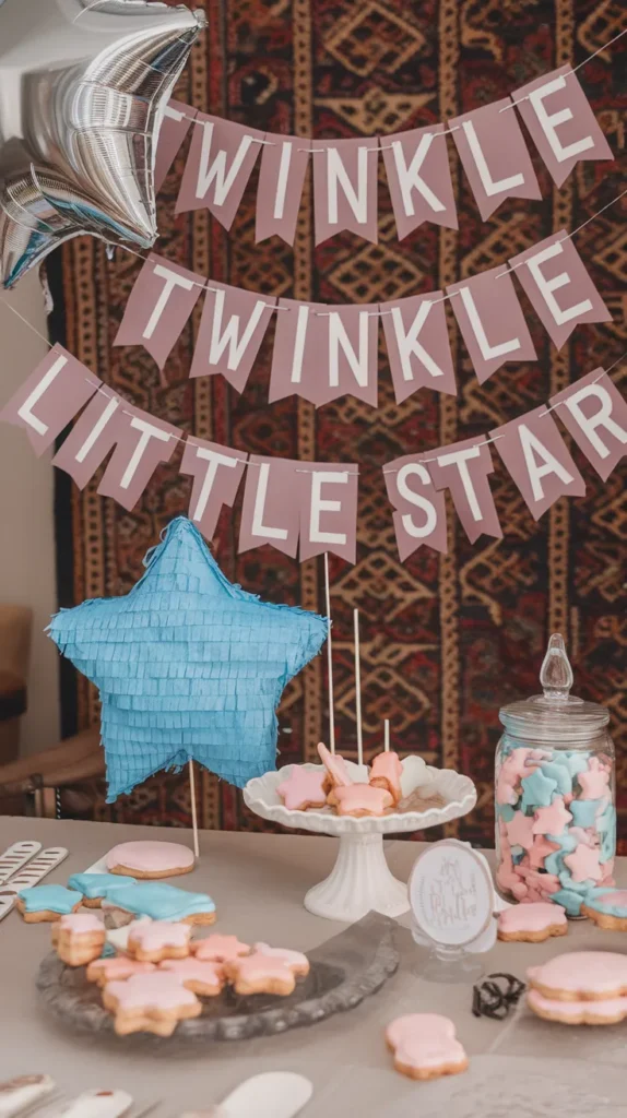 This theme is a classic for a reason. It’s gender-neutral (unless you want to lean hard into pink or blue), it plays heavily on nostalgia, and frankly, it gives us an excuse to put edible glitter on everything. Who doesn’t love edible glitter? Okay, maybe your vacuum cleaner, but that’s a problem for future you.